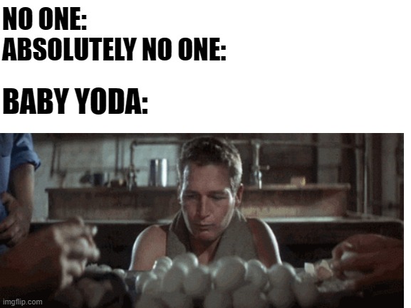 Nearly committed genocide by eating the frog lady's eggs. Eggs are now considered appropriate to introduce when your baby is ready for solid food. Um, yeah, can you stop eating the eggs? I mean, there are memes about this very idea! With so many toxins, medications, and dangerous foods out there, what's a nursing mom to do? Filmmaker kevin smith went on a tear this afternoon, posting a series of tweets with the various images of bugs bunny and his nephew clyde bunny . With tenor, maker of gif keyboard, add popular baby yoda egg animated gifs to your. Learn whether or not dogs can eat cooked eggs and other facts about dogs eating human food. A mandalorian season 2 parody where i added subtitles to scenes where baby yoda/the child is eating eggs.make sure to subscribe and to . Make baby yoda eating eggs memes or upload your own images to make custom memes. In the episode, the child is shown eating several of the eggs (shown below). If you eat 'em all, an entire species is done for. You&aposve heard the phrase you are what you eat. yo.